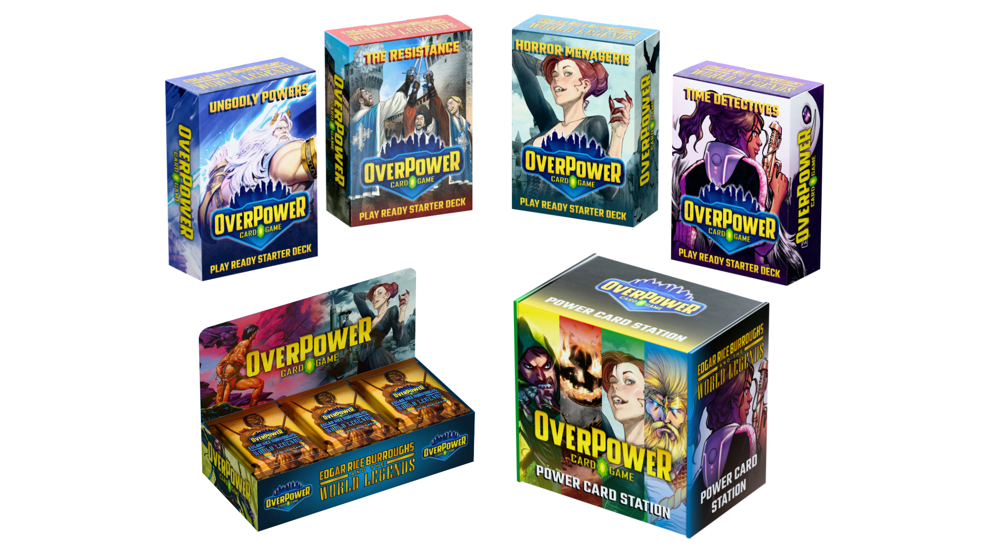 Take on the role of OverPower Hero! This bundle features all four unique starter decks, two boxes of 36 booster packs, and a power card station for all your Power card needs, totaling 232 starter cards, 1224 booster cards and over 200 power cards.
